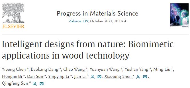 7月22日,化材學院林業工程學科生物質仿生智能研究團隊在材料科學領域國際頂尖期刊《Prog. Mater Sci.》(中科院1區Top,IF=37.4)在線發表題為“Intelligent designs from nature: biomimetic applications in wood technology”(木材仿生智能科學與技術)的綜述論文。第一作者是該團隊博士陳逸鵬,通訊作者為東北林業大學李堅院士、浙江農林大學沈曉萍副教授和孫慶豐教授。浙江農林大學化學與材料工程學院為該論文第一單位和通訊作者單位。