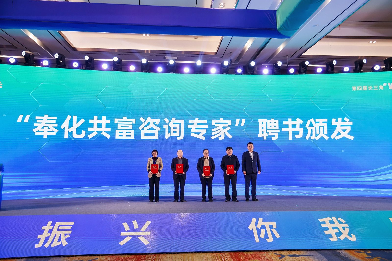 朱勇軍、范勝兵、沈月琴分別致辭。會上舉行了“奉化共富咨詢專家”聘任儀式,胡永光向?qū)O中華、顧益康、黃祖輝、沈月琴等4位專家頒發(fā)聘書。