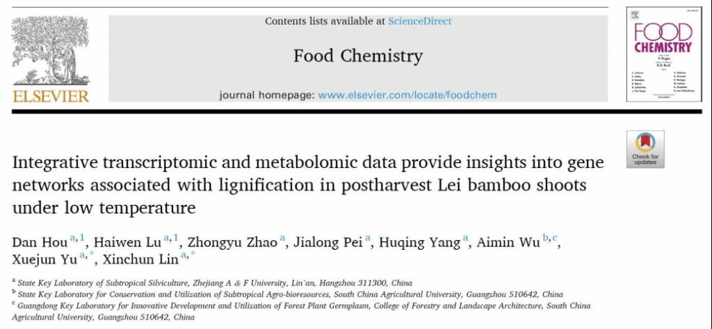 近日,國際知名學(xué)術(shù)期刊Food Chemistry(IF=7.514)在線發(fā)表了國家重點(diǎn)實(shí)驗(yàn)室竹子研究團(tuán)隊(duì)題為“Integrative transcriptomic and metabolomic data provide insightsinto gene networks associated with lignification in postharvest Lei bamboo shoots under low temperature”的研究論文。該研究提出低溫可能通過直接抑制,或通過誘導(dǎo)茉莉酸合成來間接抑制木質(zhì)素合成基因表達(dá),進(jìn)而降低采后雷竹筍木質(zhì)化來延緩其衰老。