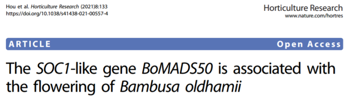 近日,國(guó)家重點(diǎn)實(shí)驗(yàn)室竹子研究團(tuán)隊(duì)在園藝領(lǐng)域國(guó)際知名期刊《Horticulture research》(IF=5.570),在線發(fā)表了最新研究成果《TheSOC1-like geneBoMADS50is associated with the flowering ofBambusa oldhamii》。該研究發(fā)現(xiàn)BoMADS50可能是竹子開(kāi)花重要的正向調(diào)控因子,并提出BoMADS50不同SNP功能的保守性和特異性可能導(dǎo)致竹子同時(shí)具有成片開(kāi)花和零星開(kāi)花的特性。