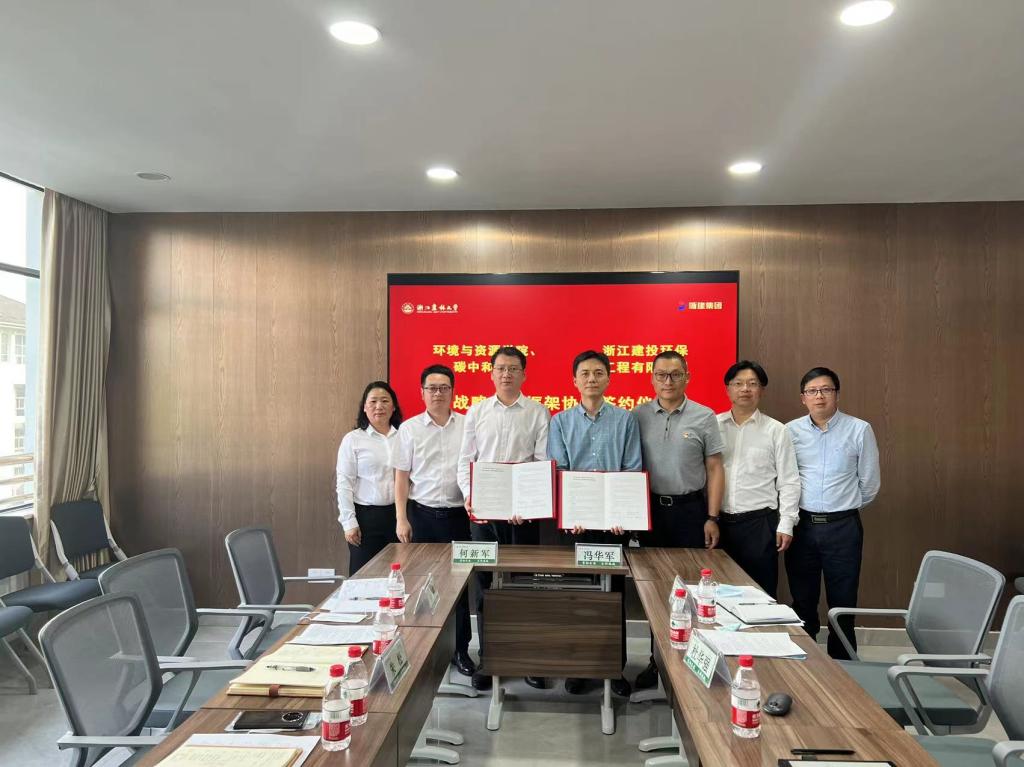 5月25日,環資院、碳中和學院與浙江建投環保工程有限公司簽訂戰略合作框架協議。浙江建投環保工程有限公司黨總支書記、董事長何新軍一行,學院黨政班子、各學科負責人出席簽約儀式。
