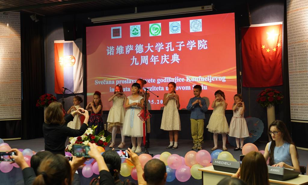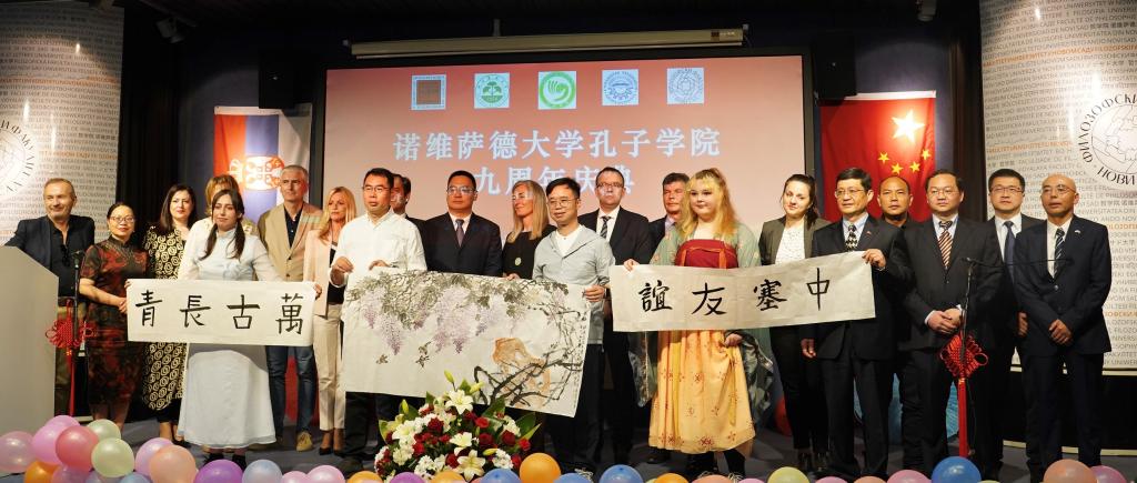 當(dāng)?shù)貢r(shí)間5月27日,諾維薩德大學(xué)孔子學(xué)院舉辦九周年慶典活動(dòng)。來自塞爾維亞教育部、中國駐塞爾維亞大使館、伏伊伏丁那省與諾維薩德大學(xué)的領(lǐng)導(dǎo),以及塞爾維亞社會(huì)各界知名人士、孔子學(xué)院下屬孔子課堂和各個(gè)教學(xué)點(diǎn)師生代表以及中國書畫家等近200人齊聚一堂,各個(gè)合作教學(xué)點(diǎn)的師生們組織策劃了中文歌曲合唱、《論語》朗誦、太極、茶藝等眾多節(jié)目,共同慶祝諾大孔院建院九周年。