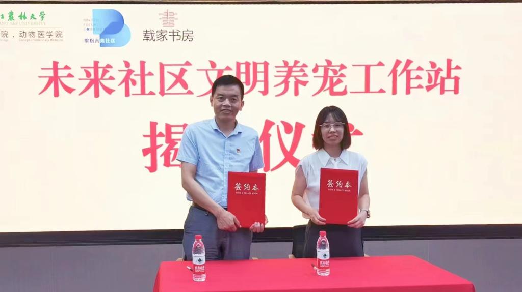活動(dòng)中,獸醫(yī)學(xué)科教工黨支部書記王曉杜和西興街道水電社區(qū)黨委書記張維簽署黨建聯(lián)建協(xié)議書。雙方將在養(yǎng)寵文明交流、文明養(yǎng)寵工作站和人才培養(yǎng)等多方面展開全面合作。