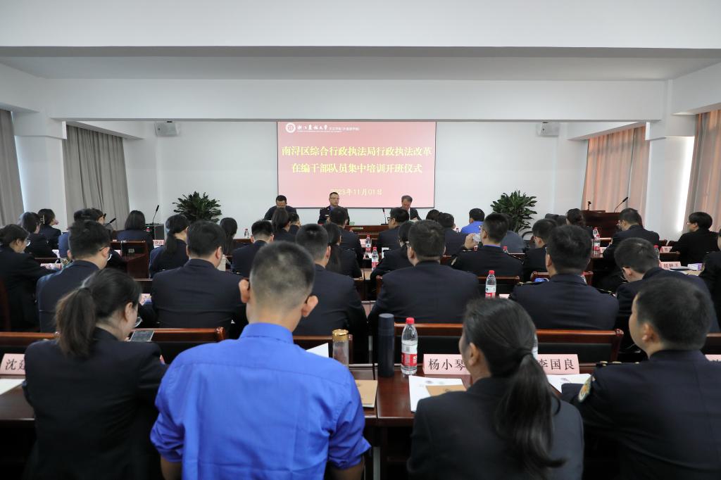11月1日,南潯區綜合行政執法局第二期干部培訓班在文法學院開班。來自南潯區綜合行政執法局的領導干部、執法人員近50人參加培訓。