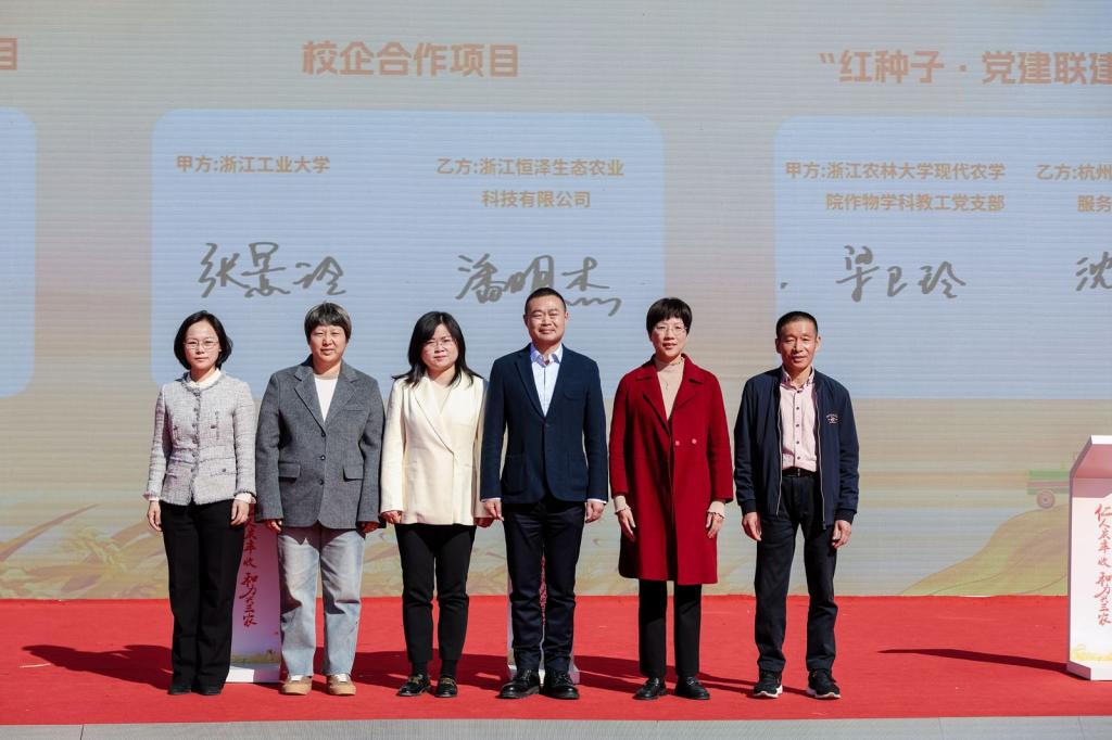 活動中,梁衛玲代表作物學科黨支部與杭州余杭益民農業生產服務專業合作社開展“紅種子?黨建聯建”簽約和學院教育教學實踐基地授牌,與余杭區農業農村局領導、街道領導、興農人代表進行了充分交流,就今后開展黨建活動、教育教學、項目合作和人才培養等方面的全方位合作達成了初步意向。余杭益民農業理事長助理、首屆興農人代表、我院優秀校友農藝與種業2020屆畢業生朱泯亦分享了在仁和鄉村的耕耘故事。