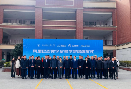 阿里巴巴網(wǎng)絡(luò)技術(shù)有限公司、商學(xué)院、浙江中渤教育科技有限公司三方簽訂了共建阿里巴巴數(shù)字貿(mào)易學(xué)院協(xié)議。杭州市委黨校副校長、二級巡視員廖志林,暨陽學(xué)院院長徐光輝,暨陽學(xué)院黨委書記洪昀,阿里巴巴網(wǎng)絡(luò)技術(shù)有限公司代表,諸暨市商務(wù)局黨組書記姚勇琪,中渤教育科技有限公司總經(jīng)理茹寶共同為數(shù)字貿(mào)易學(xué)院揭牌。