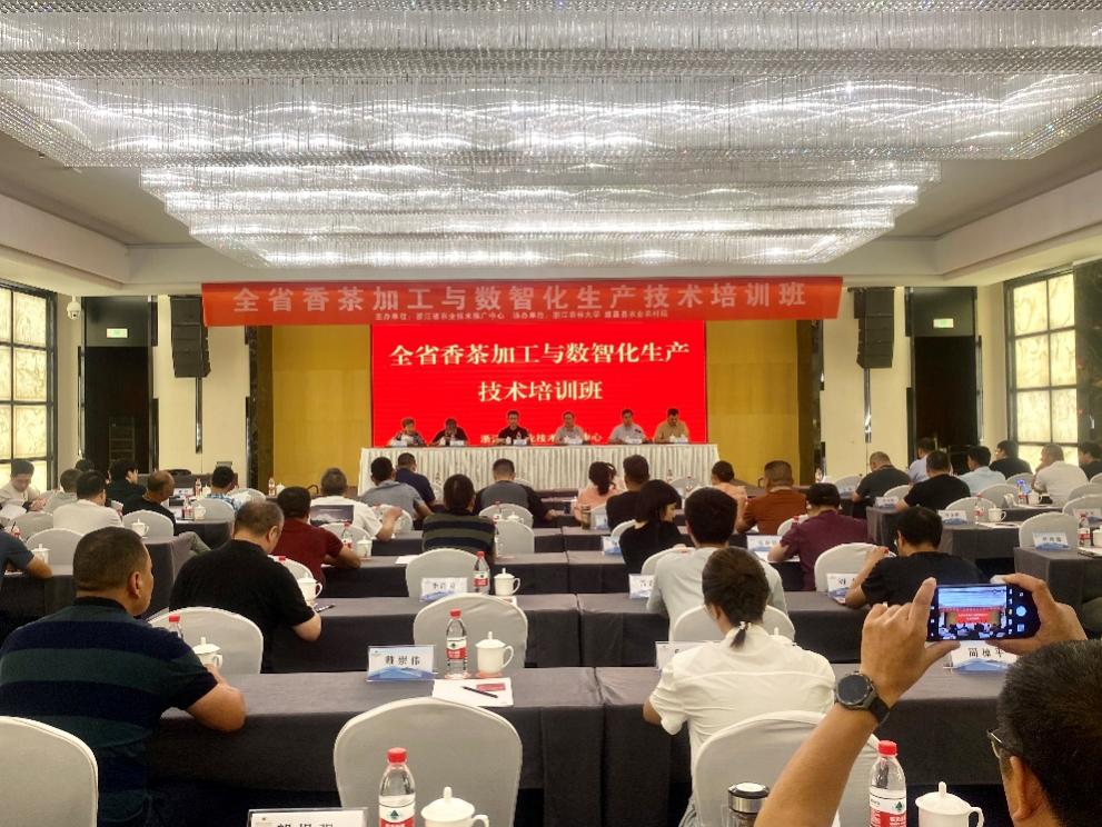 7月18至19日,由浙江省農業技術推廣中心主辦,浙江農林大學、遂昌縣農業農村局承辦的全省香茶加工與數智化生產技術培訓班在麗水市遂昌縣舉行。省農業農村廳茶葉首席專家、研究員陸德彪,研究員黃偉紅,麗水市農業農村局經濟作物總站站長葉建軍,遂昌縣農業農村局副局長朱日周,遂昌縣科協副主席葉春輝等出席開班儀式并致辭。