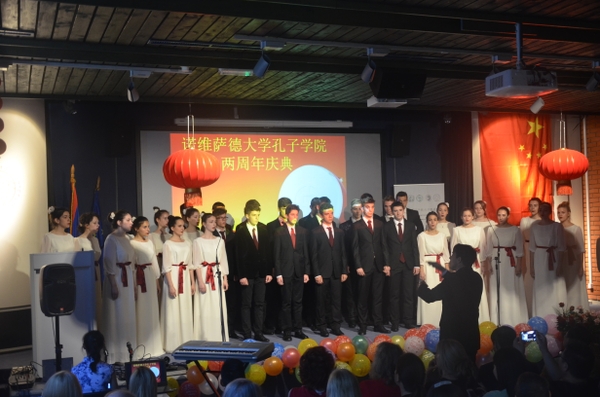 在建院兩周年之際,當地時間5月27日,諾維薩德大學孔子學院舉辦了盛大的慶典活動,中國駐塞使館文化參贊徐鴻、諾大副校長Sanja Stojanovic、中塞文化交流協會會長郭曉及200多位來自全塞近20所教育機構的師生出席慶典活動。