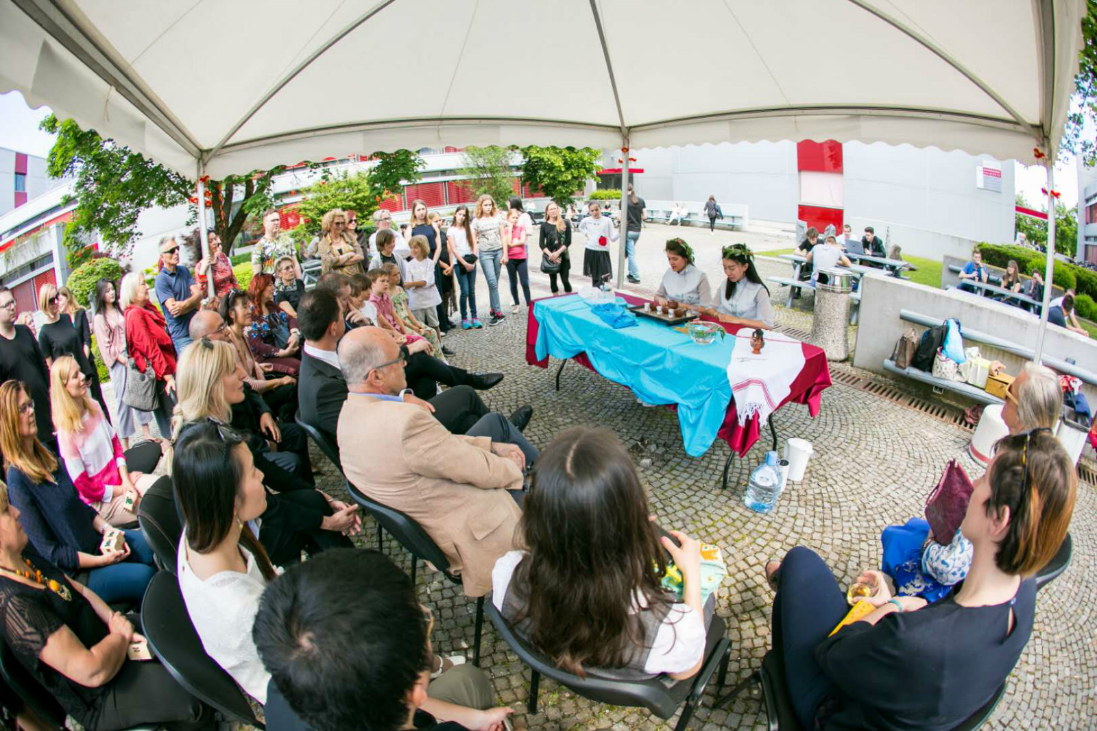 文化周開幕式上,諾大孔院教師王曉玲和學生斯爾佳娜·佩特瑞維奇(Srdjana Petrovic)呈現了雙人茶藝《多瑙茶情》。盧大孔院外方院長達妮耶拉·沃里齊(Danijela Volj?)和盧大校長伊格·帕佩奇(IgorPapic)給予了高度評價。盧大眾多師生也慕名前來觀摩。