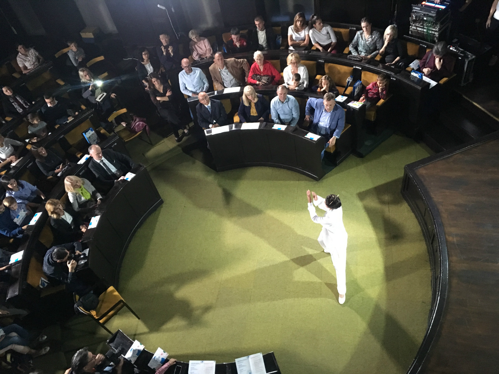 當(dāng)晚在市政廳小會(huì)議廳舉行的文藝演出也是巴尼亞盧卡大學(xué)孔子學(xué)院舉辦的孔子學(xué)院日活動(dòng)的一部分。波黑塞族共和國(guó)文化旅游社會(huì)政策部負(fù)責(zé)人麗塔莉亞·特瑞維奇(NatalijaTrivic)、巴尼亞盧卡大學(xué)校長(zhǎng)羅德斯拉夫·加亞寧(Radoslav Gajanin)蒞臨現(xiàn)場(chǎng)觀看本次文藝演出。會(huì)場(chǎng)座無(wú)虛席,一片熱鬧景象。諾大孔院師生在當(dāng)晚熱情獻(xiàn)上了三場(chǎng)驚艷的中國(guó)文化節(jié)目,首先是《花好月茗》中秋主題雙人茶藝表演,甜甜的桂花搭配幽幽的烏龍香,茶香幽幽,思鄉(xiāng)之情涌上心頭;學(xué)生思瑞嘉娜·佩德若維奇更是傾情演唱了經(jīng)典中文歌曲《月亮代表我的心》,動(dòng)人的歌聲和標(biāo)準(zhǔn)的發(fā)音深深打動(dòng)了現(xiàn)場(chǎng)觀眾的心,她還表演了楊氏太極拳。演出中,兩所孔院的聯(lián)袂表演,中國(guó)舞姿飄飄,中文歌聲裊裊,再加上地道的中國(guó)茶道與武術(shù)表演,讓觀眾沉醉在中國(guó)文化的魅力之中。