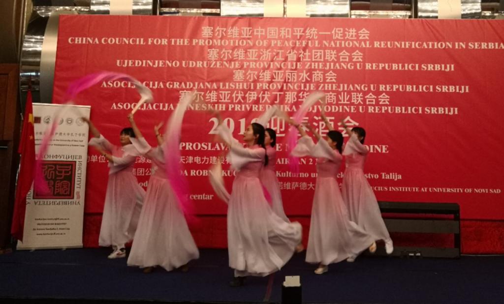 活動期間,中塞多家機構呈現了精彩紛呈的文藝節目。諾大孔院師生合作呈現了賞心悅目的茶藝《茗月》、優雅古典的長扇舞《手掌心》、活潑俏皮的吉他彈唱《童年》,讓現場嘉賓耳目一新,獲得一片贊譽;塞爾維亞國家藝術團的傳統舞蹈讓觀眾們目不轉睛,現場氣氛異?;钴S;塞爾維亞“東方之家”學員表演的西藏舞蹈和合唱《愛我中華》引起了全場的共鳴。